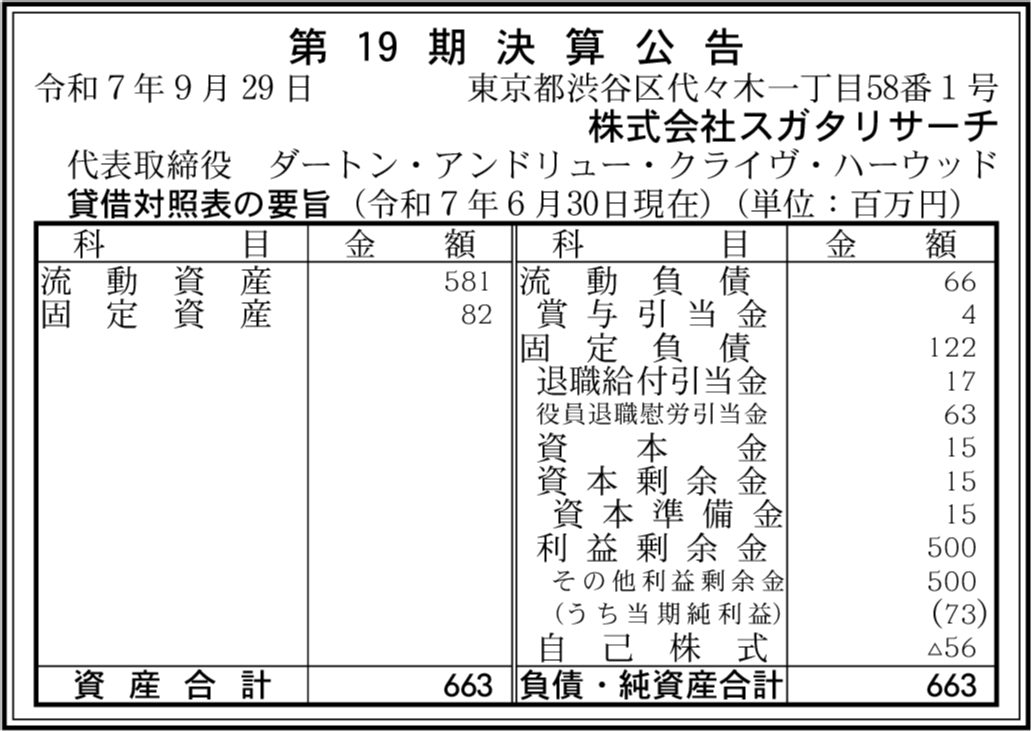 | 総資産 | 6億6,300万円 (▲3.91%) |