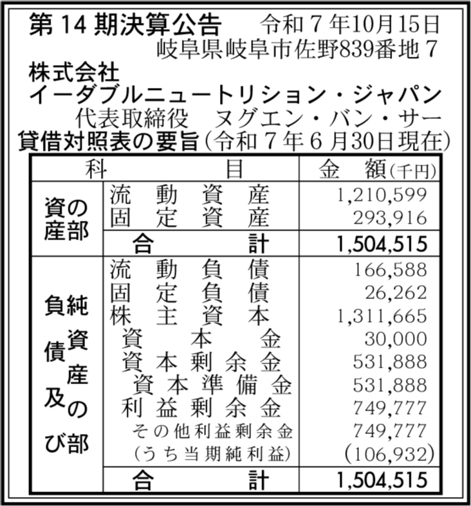 総資産 | 15億451万5,000円 (▲23.57%) |
