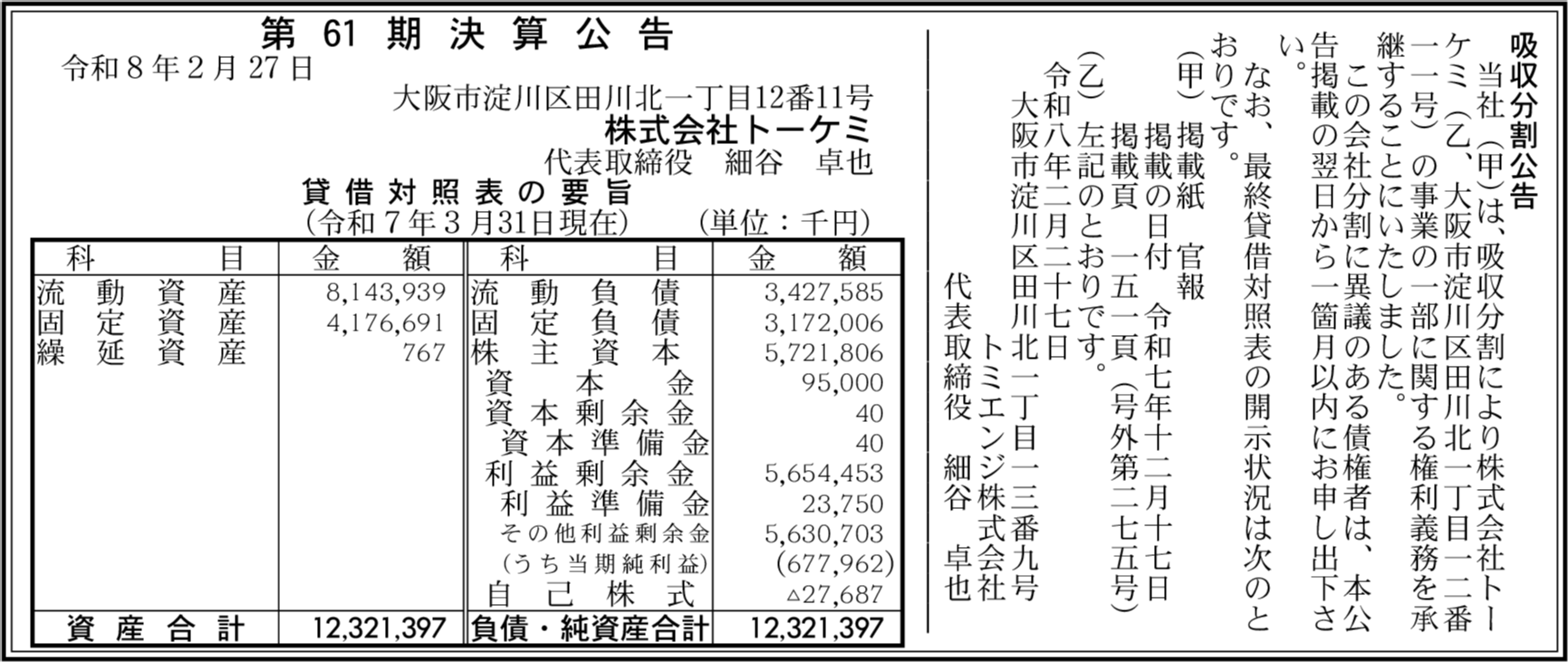 トミエンジ株式会社 大阪市淀川区 【2025年3月期】 |