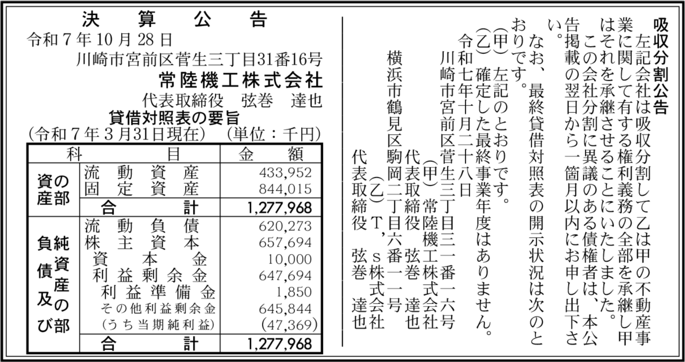 | 決算末日 | 2025年03月31日 |