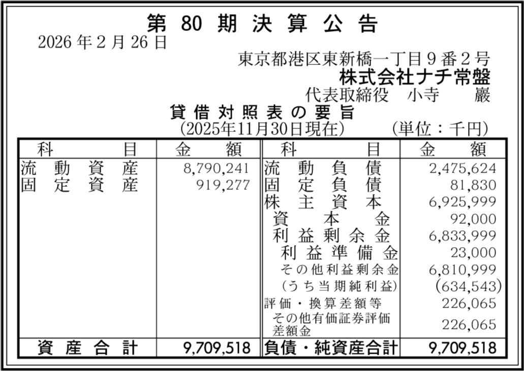 株式会社ナチロボットエンジニアリング 東京都港区 【2025年11月期】 |