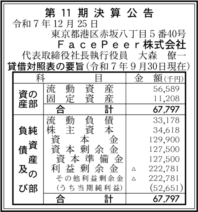 | 利益剰余金 | ▲2億2,278万1,000円 (赤字縮小) |