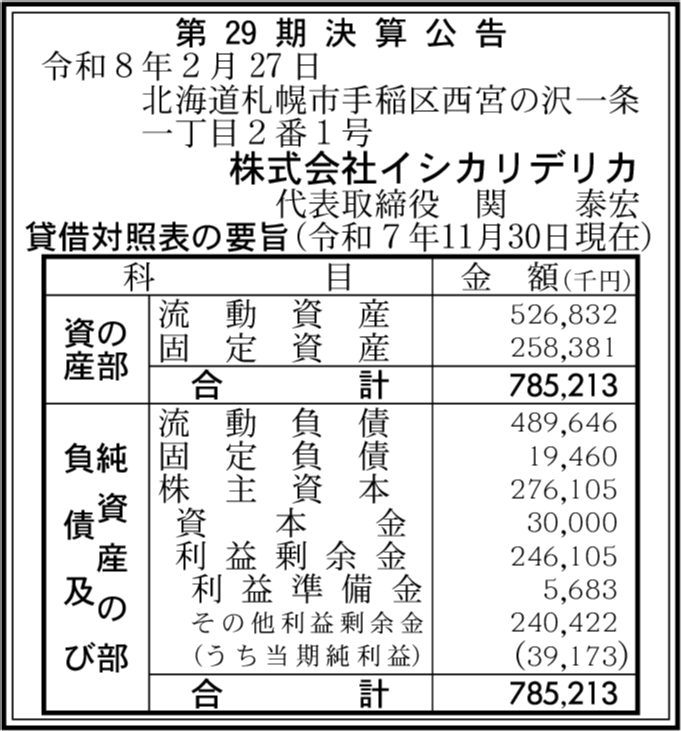 株式会社イシカリデリカ 北海道札幌市手稲区 |