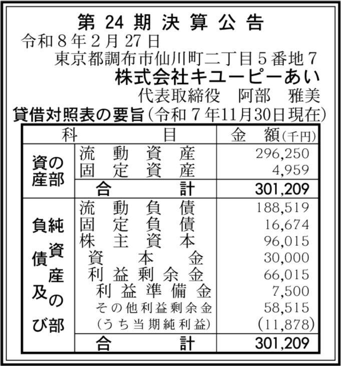 キユーピーデジタルイノベーション株式会社 東京都調布市 【2025年11月期】 |