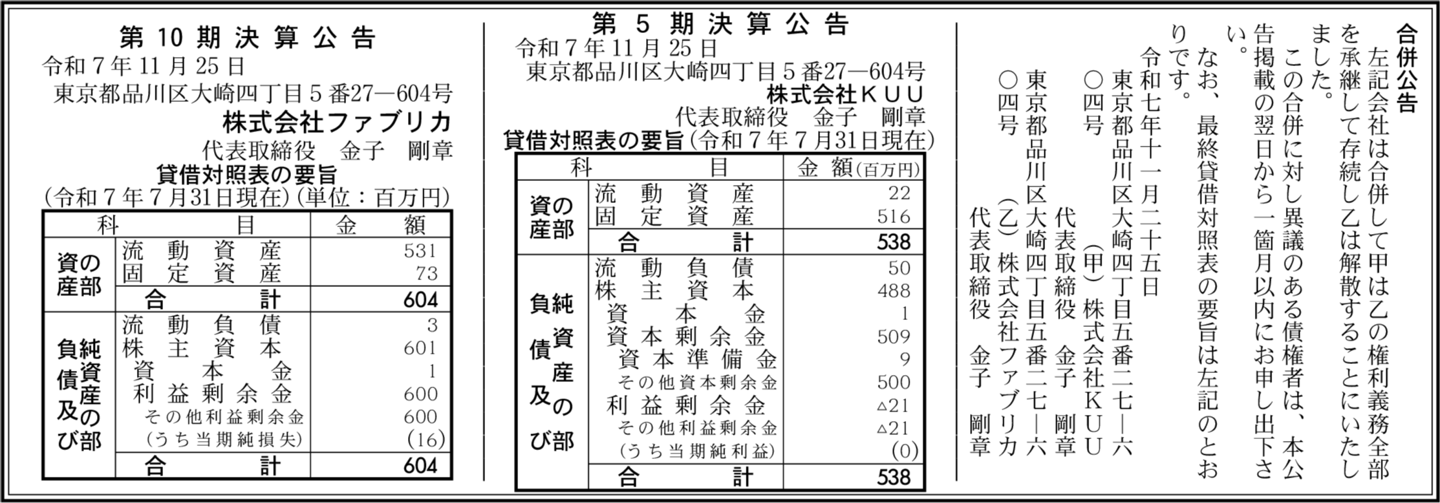 株式会社ファブリカ 東京都品川区 【2025年7月期】 |