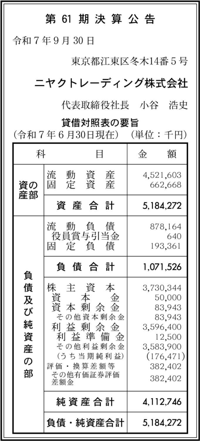 親会社・関連会社等 | 株式会社ニヤクコーポレーション(12) |