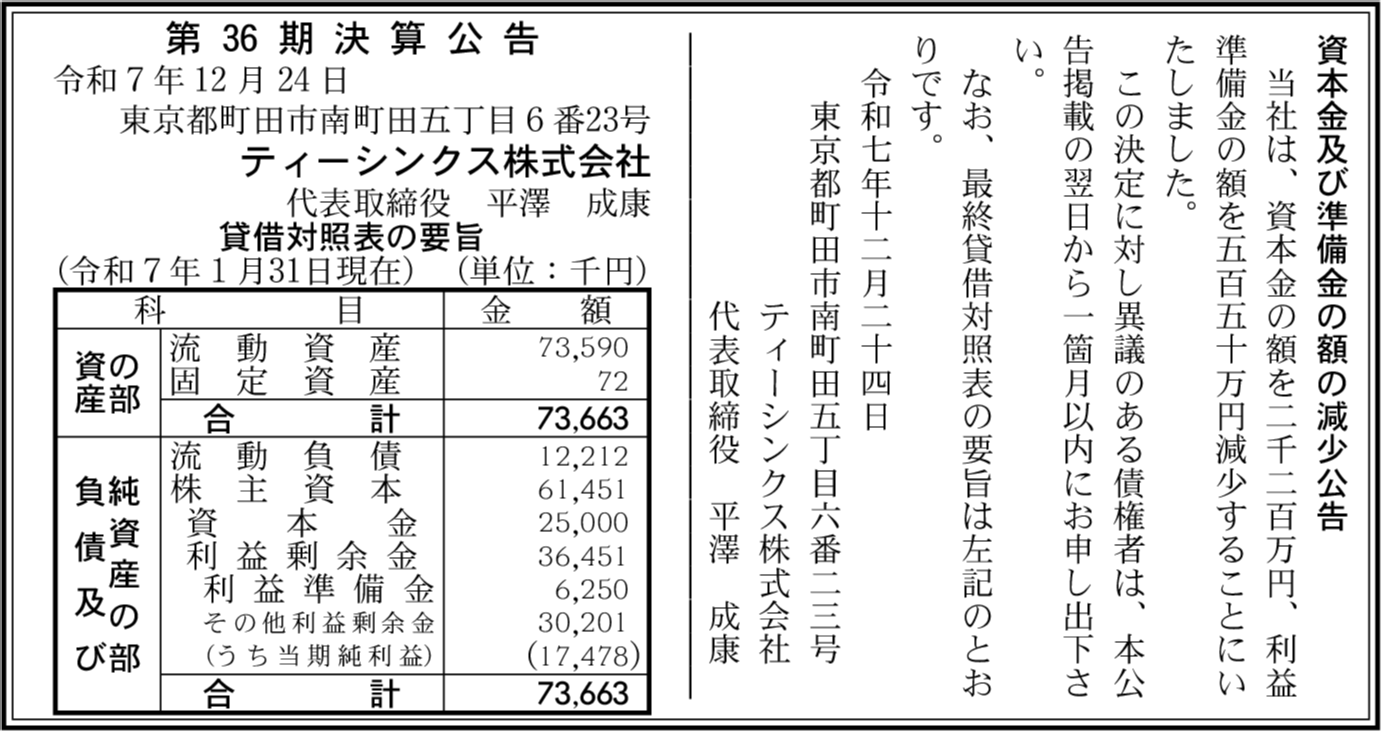 | 会社名 | ティーシンクス株式会社 |