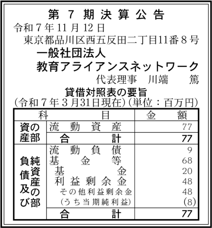 | 会社名 | 一般社団法人教育アライアンスネットワーク |