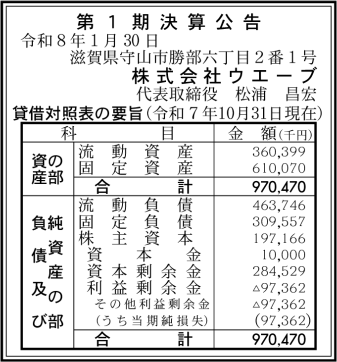 株式会社ウイル・コーポレーション 石川県白山市 【2025年10月期】 |