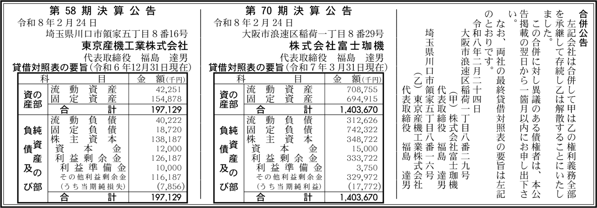 株式会社明遠 大阪市浪速区 【2025年7月期】 |