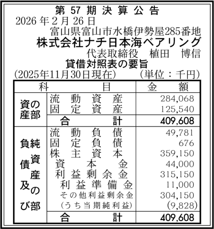 株式会社ナチツールエンジニアリング 富山県富山市 【2025年11月期】 |