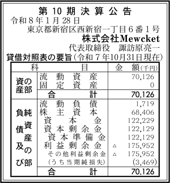 | 会社名 | 株式会社Mewcket |