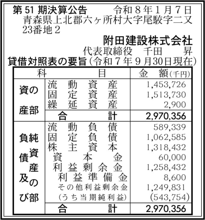 六ケ所げんねん企画株式会社 青森県上北郡六ヶ所村 【2025年3月期】 |