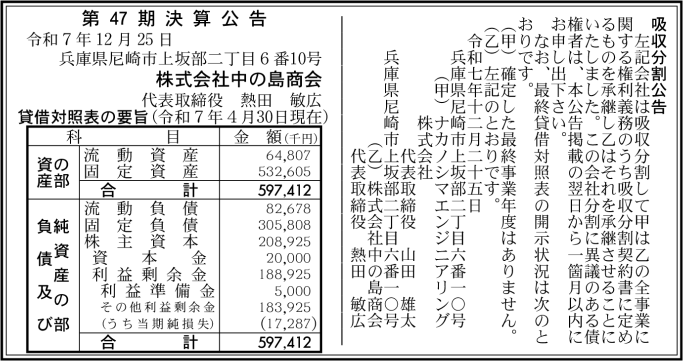 尼崎製罐株式会社 兵庫県尼崎市 【2025年9月期】 |