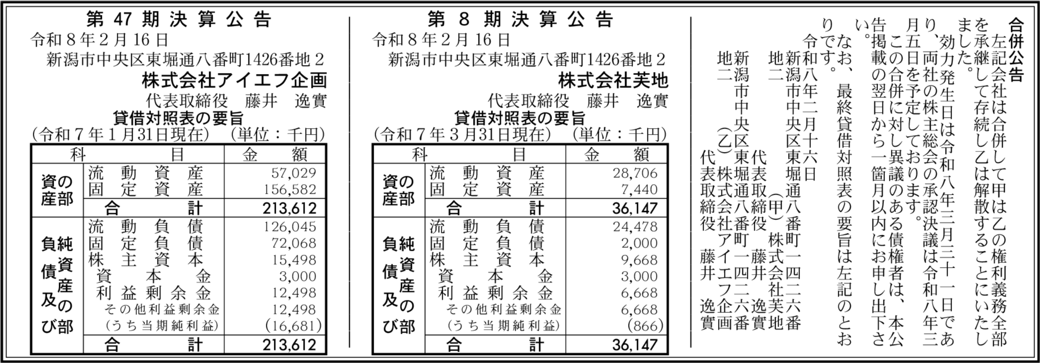 株式会社アイエフ企画 新潟市中央区 【2025年1月期】 |