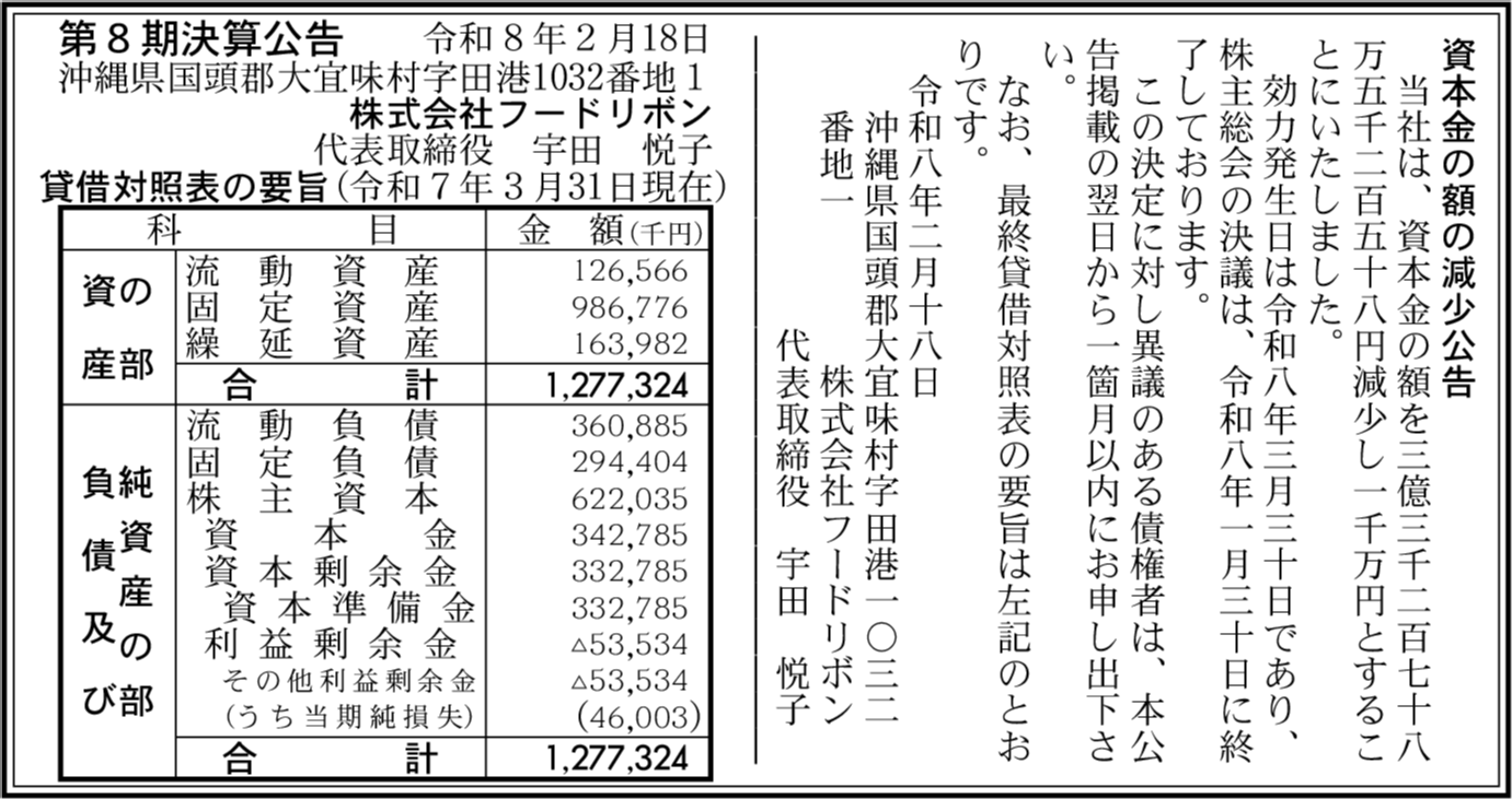 | 会社名 | 株式会社フードリボン |