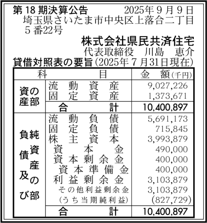 株式会社県民共済総合サービス 埼玉県さいたま市中央区 【2025年7月期】 |