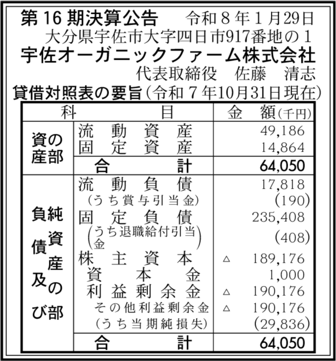 | 会社名 | 宇佐オーガニックファーム株式会社 |