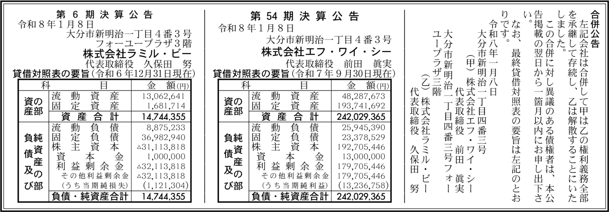 株式会社ラミル・ビー 大分市 【2024年12月期】 |
