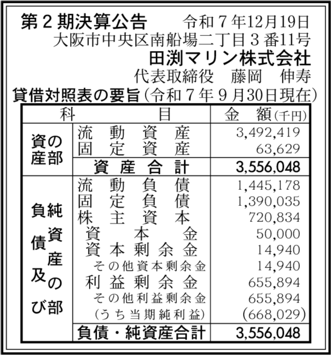 田渕海運株式会社 大阪市中央区 【2025年9月期】 |