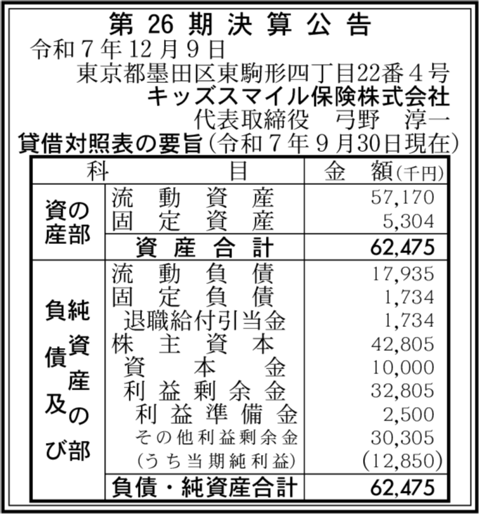 | 会社名 | キッズスマイル保険株式会社 |