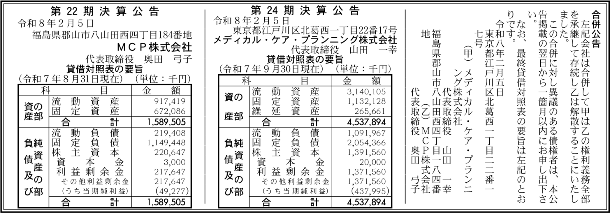 | 総資産 | 15億8,950万5,000円 |