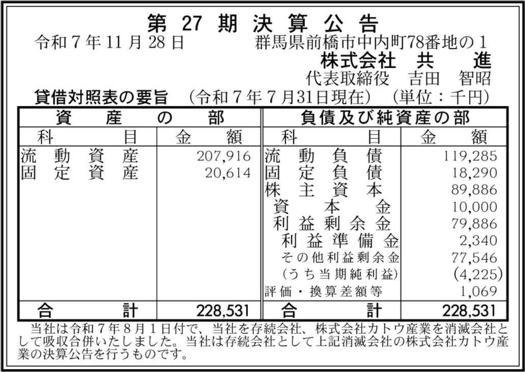 株式会社北関東M&Aサポート 群馬県前橋市 【2024年10月期】 |