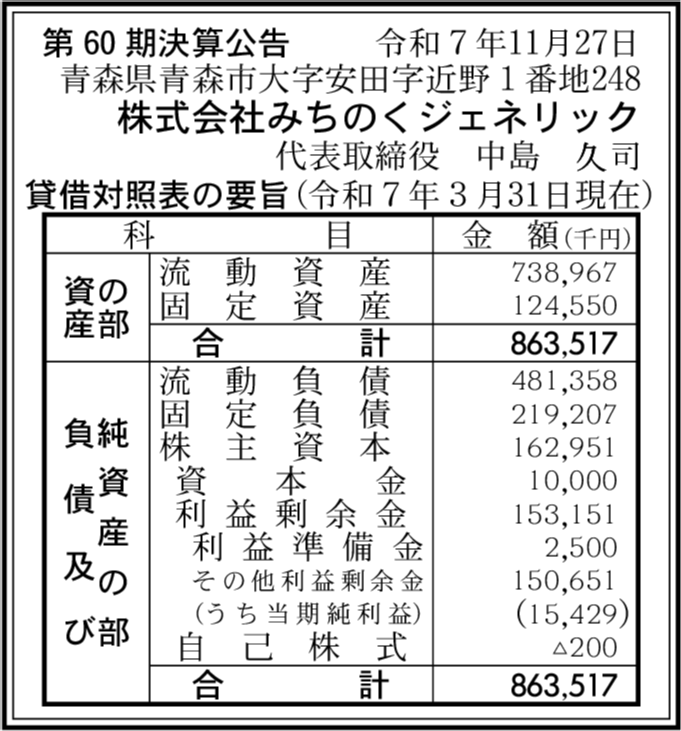 北海道ジェネリック株式会社 札幌市中央区 【2025年3月期】 |
