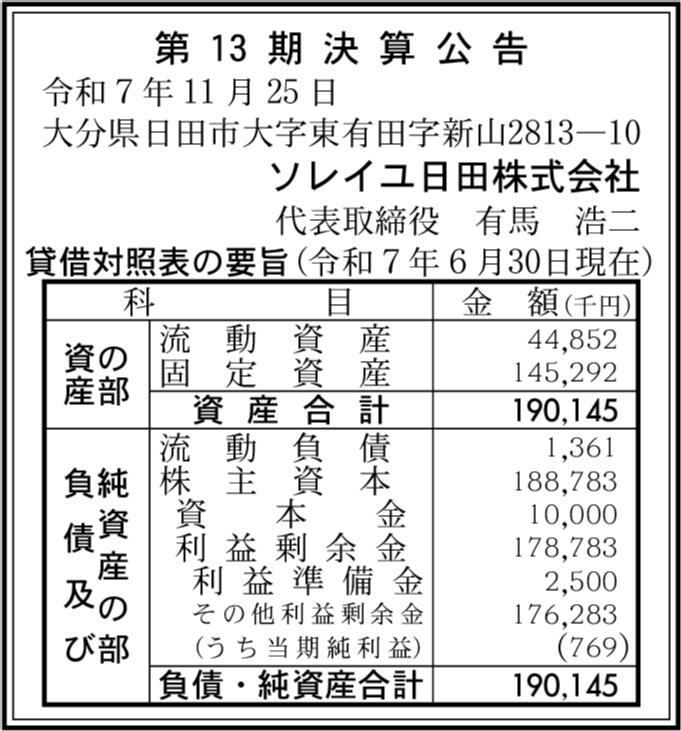 株式会社エフオン日田 大分県日田市 【2025年6月期】 |