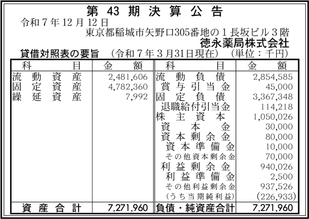 | 会社名 | 徳永薬局株式会社 |