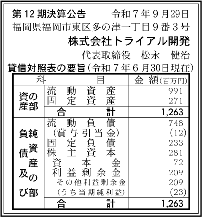 株式会社トライアルリアルエステート 福岡県福岡市東区 【2025年6月期】 |