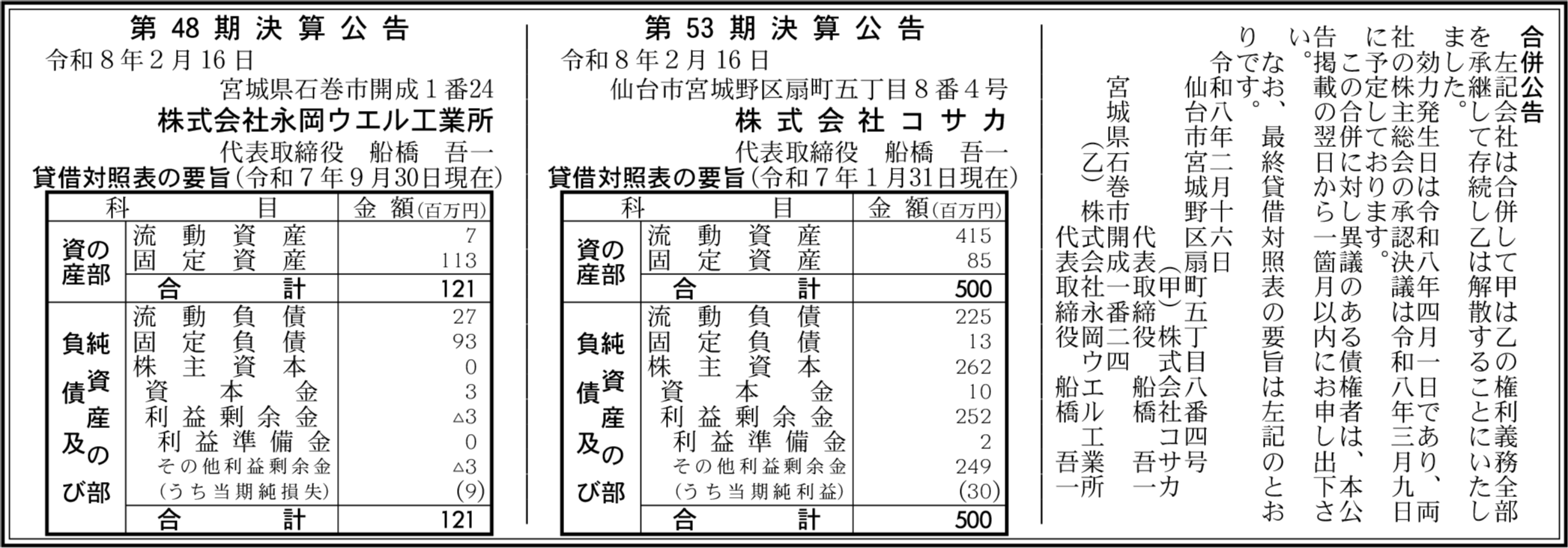 株式会社永岡ウエル工業所 宮城県石巻市 【2025年9月期】 |
