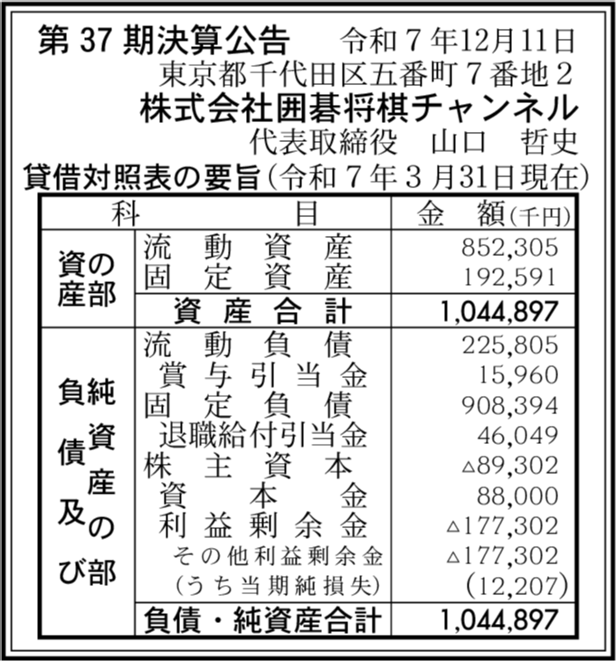 | 会社名 | 株式会社囲碁将棋チャンネル |