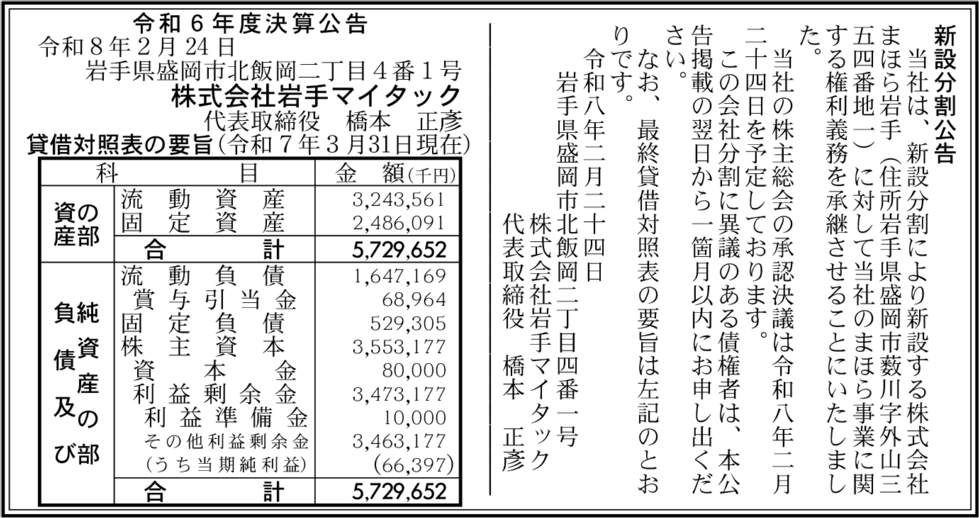 株式会社カネマン 岩手県盛岡市 【2025年3月期】 |