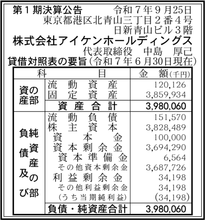 株式会社アイケンジャパン 福岡市中央区 【2025年6月期】 |
