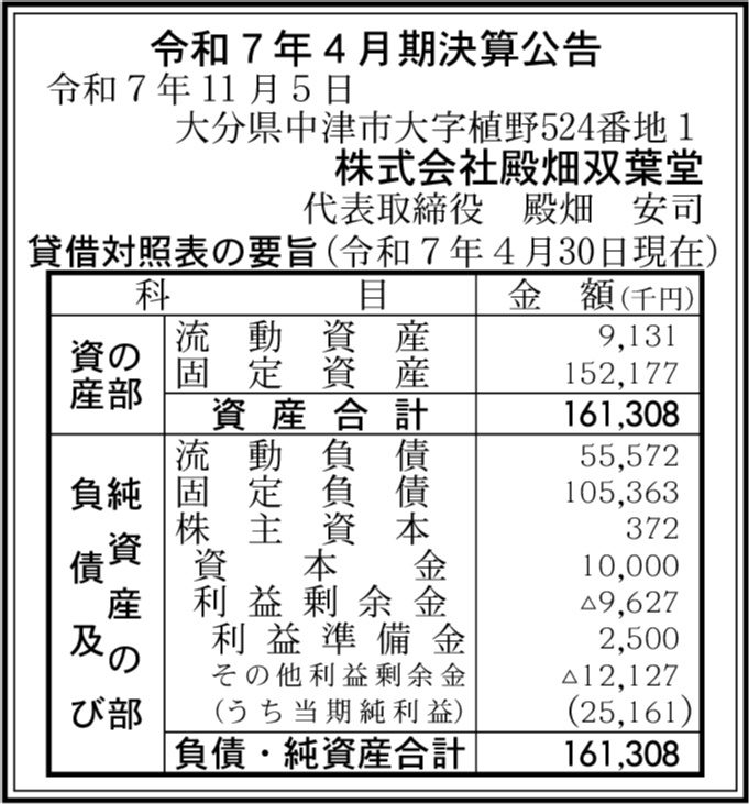 | 決算末日 | 2025年04月30日 |