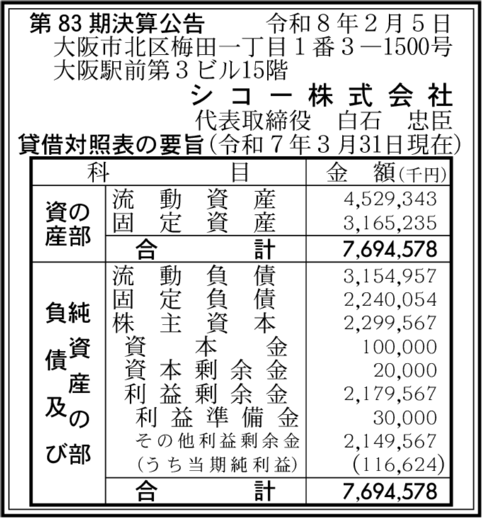 | 会社名 | シコー株式会社 |