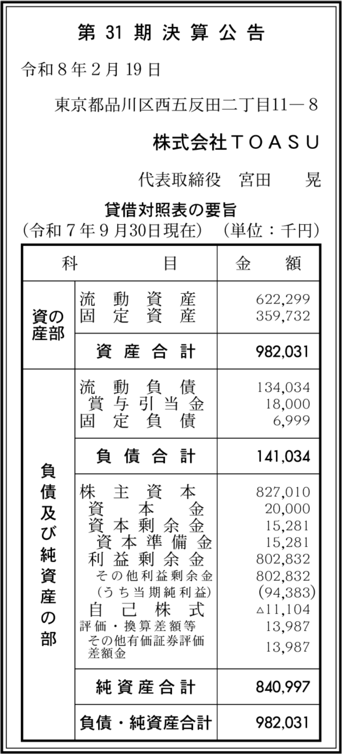 | 総資産 | 9億8,203万1,000円 (+2.2%) |