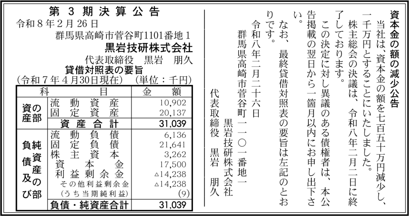 黒岩 朋久 黒岩 朋久 さんが代表の会社を検索 |
