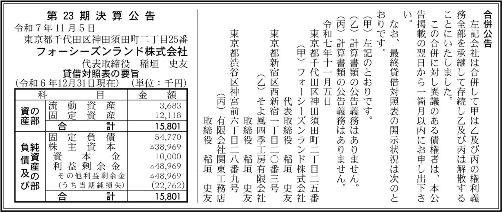 | 会社名 | フォーシーズンランド株式会社 |