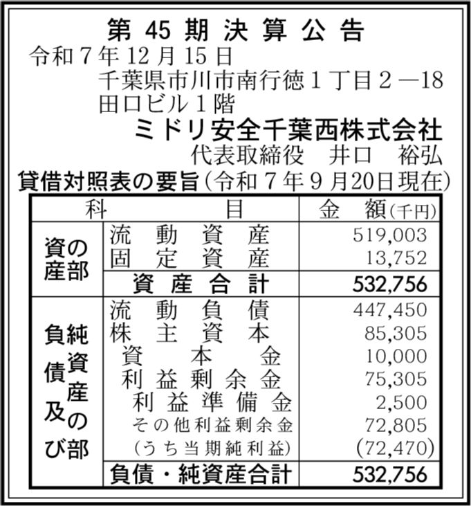 | 会社名 | ミドリ安全千葉西株式会社 |