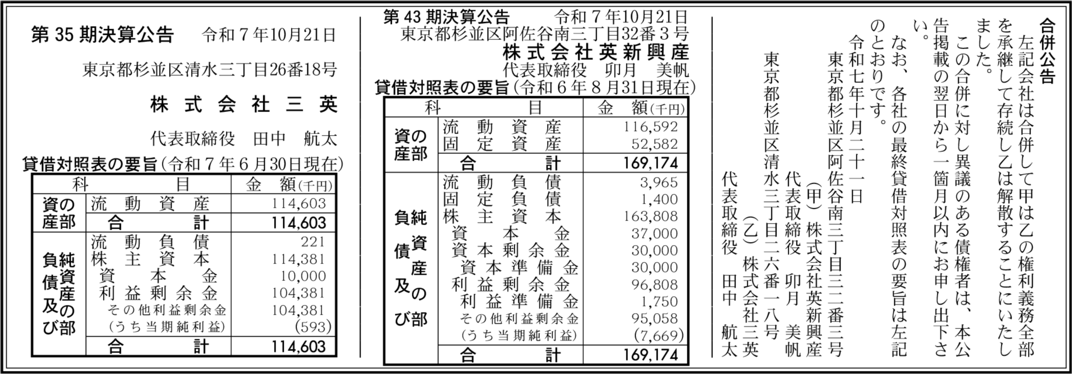 株式会社三英 東京都杉並区 【2025年6月期】 |