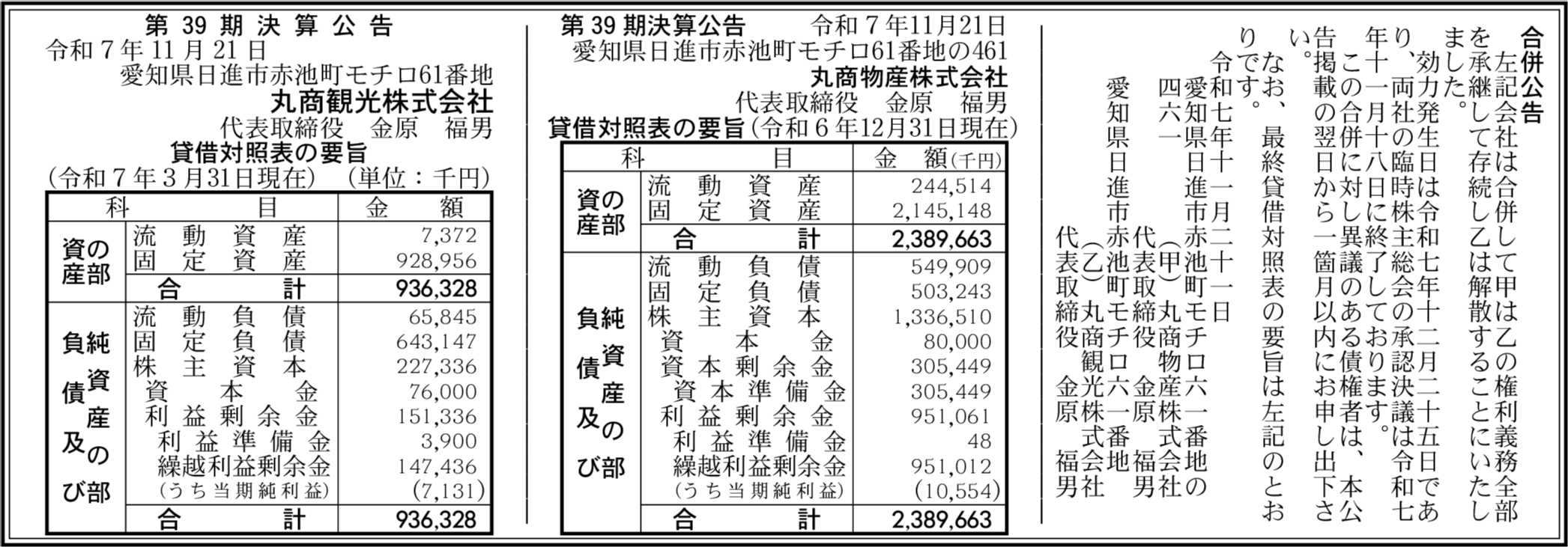 丸商物産株式会社 愛知県日進市 【2024年12月期】 |