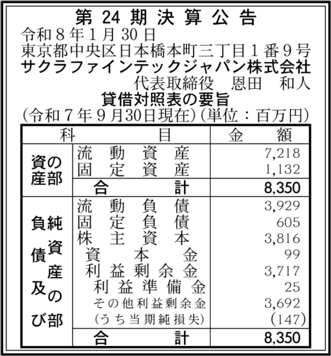 サクラファインテックグループ株式会社 東京都中央区 【2025年9月期】 |