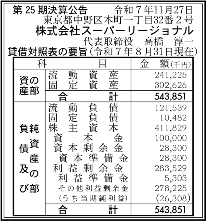 | 会社名 | 株式会社スーパーリージョナル |