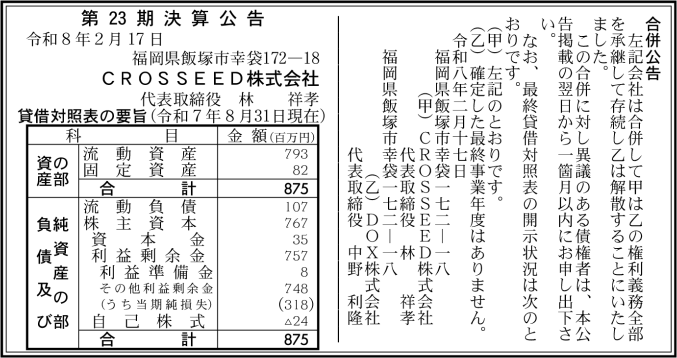 | 会社名 | CROSSEED株式会社 |