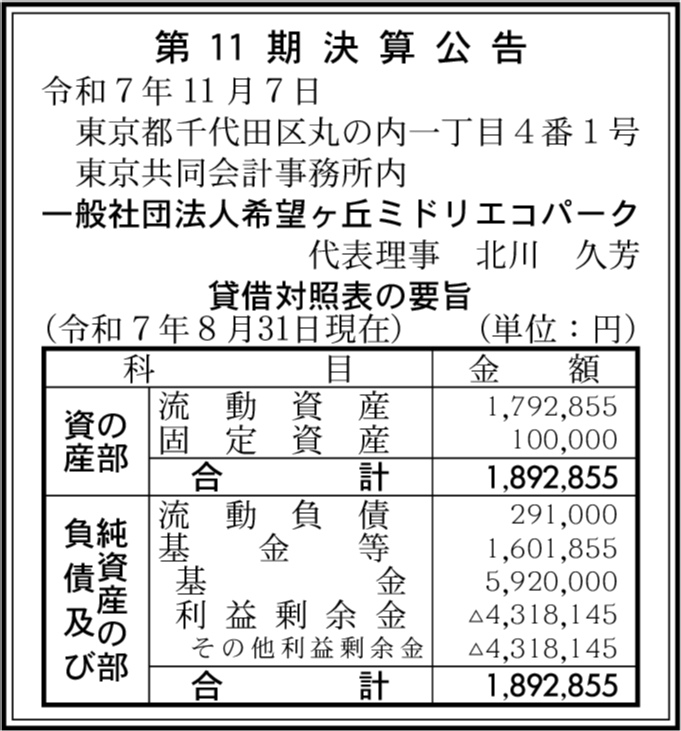 | 会社名 | 一般社団法人希望ヶ丘ミドリエコパーク |