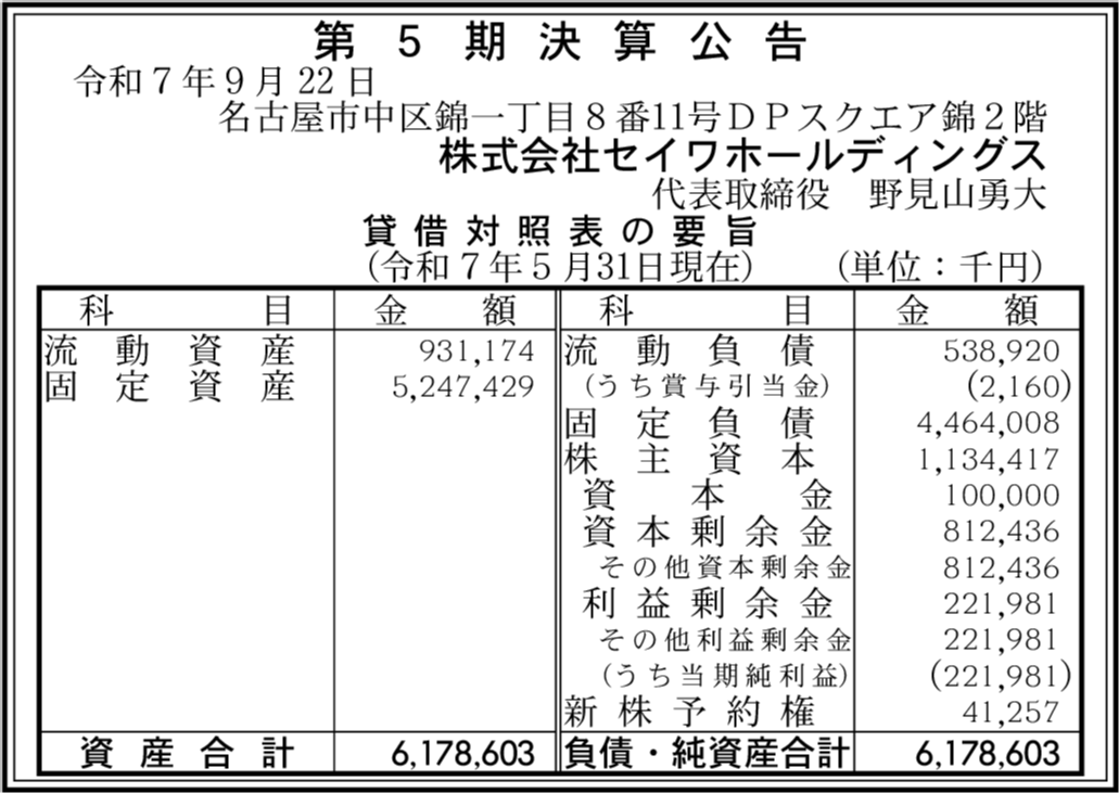 株式会社セイワ工業 三重県桑名郡木曽岬町 【2025年5月期】 |