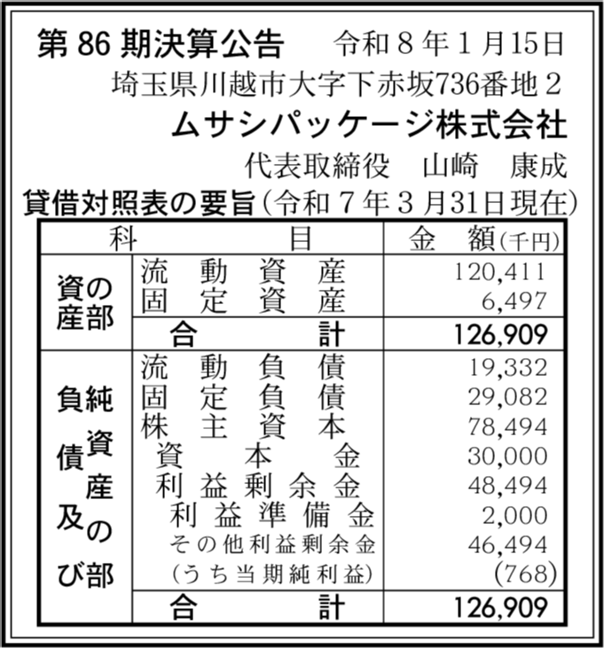 | 会社名 | ムサシパッケージ株式会社 |