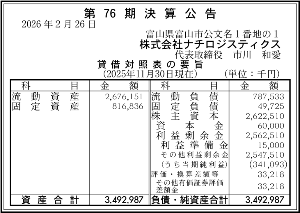 株式会社ナチツールエンジニアリング 富山県富山市 【2025年11月期】 |